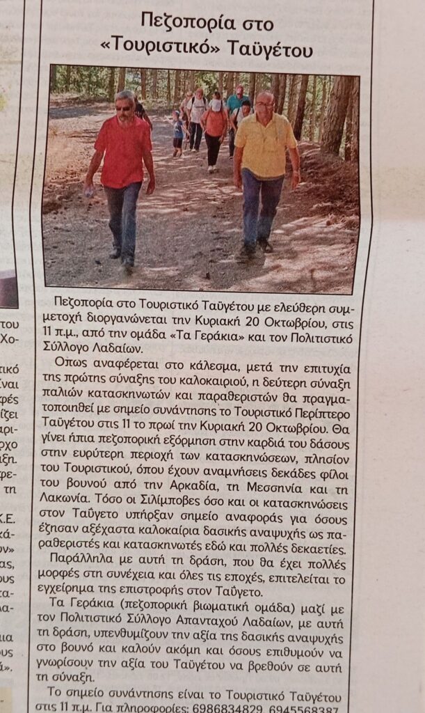Καλό Αντάμωμα την Κυριακή 20 Οκτωβρίου και ώρα 11 π.μ στο Τουριστικό Ταΰγετου για να περάσουμε μια αξέχαστη μέρα σας περιμένουμε όλους και όλες !!!